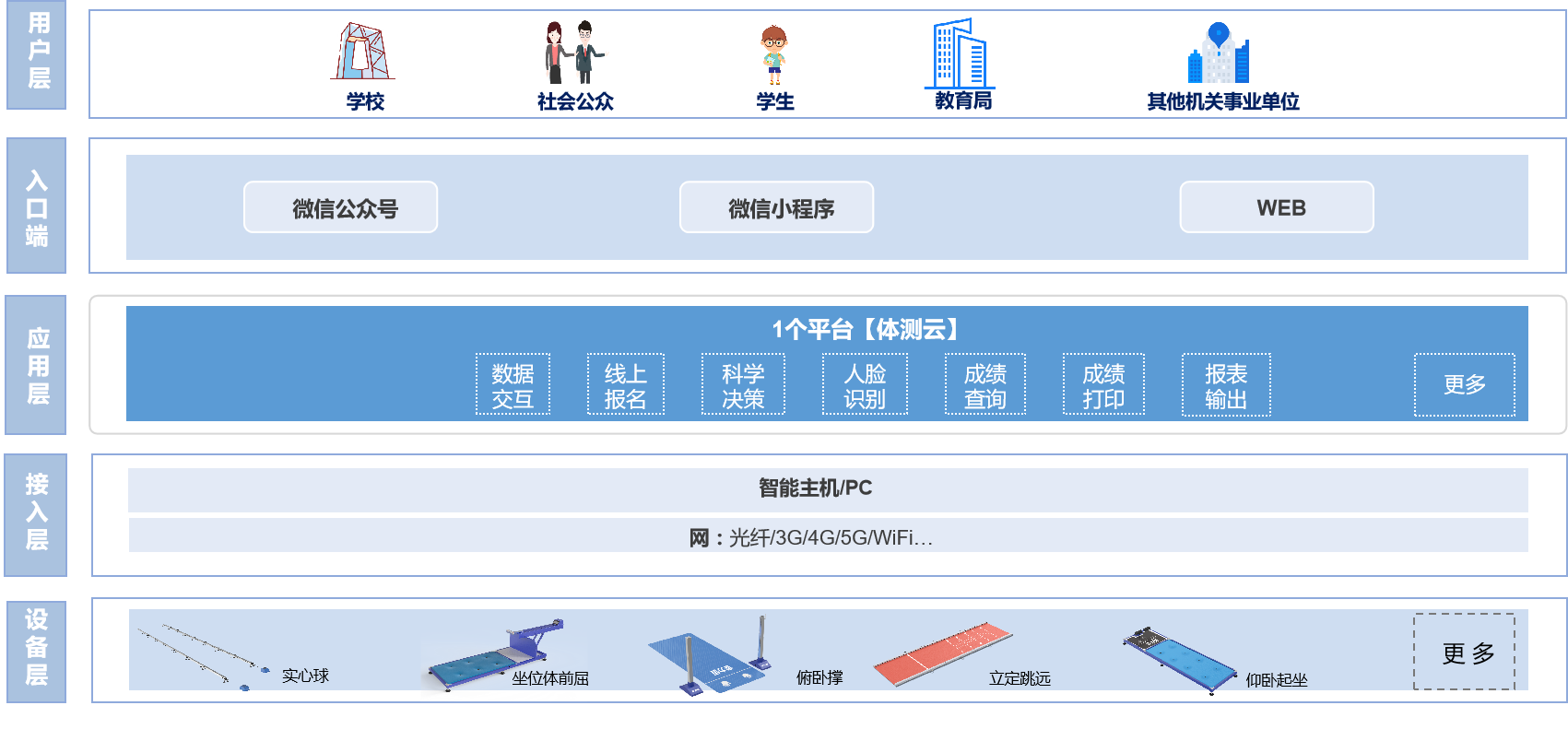 1个云平台+3大体育考试生态环境+体育考试专业智能化硬件设备